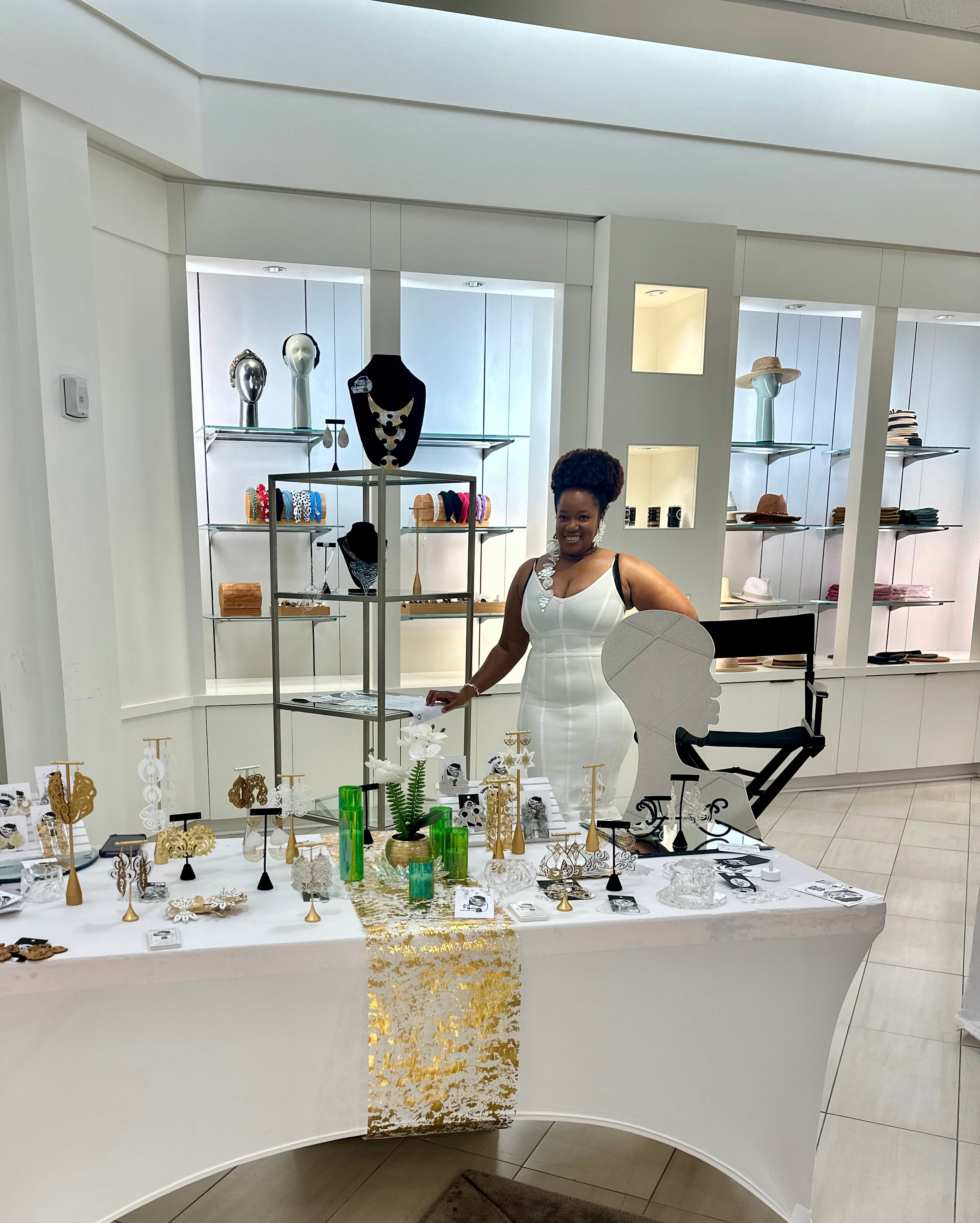 For this collaboration, a refined selection of white and gold wearable works was presented—crafted to echo the event’s aesthetic while remaining true to the artist’s visual language. Each piece was chosen for its presence, craftsmanship, and ability to belong within a highly curated environment where fashion, culture, and shared experience intersect.